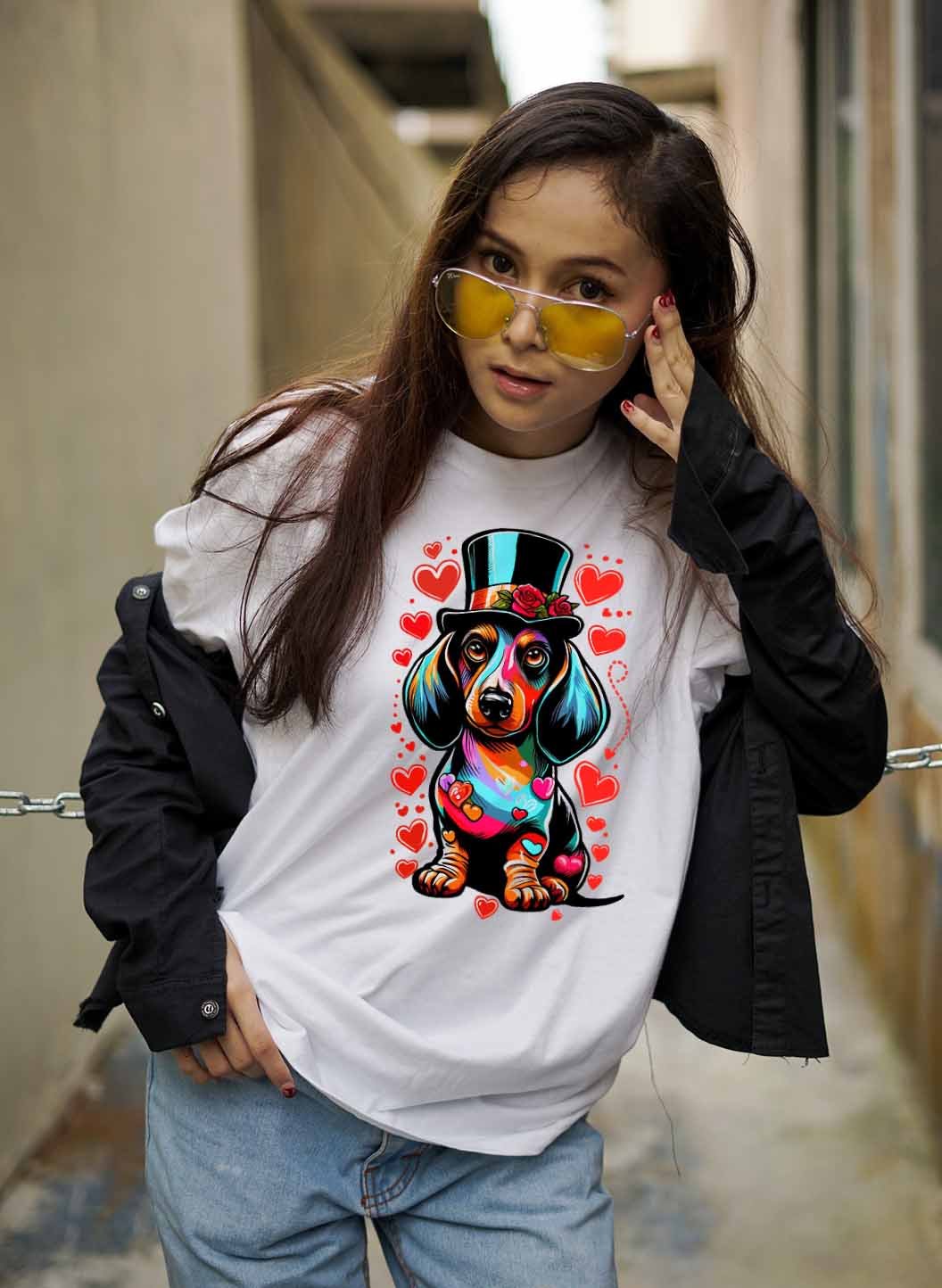 Ünnepelj ezzel a vidám és színes, aranyos tacskó pólóval! A szivárvány színeiben pompázó tacskóval minden napod ragyogóvá válik. Ez a póló tökéletes választás azoknak, akik szeretik a színes és tacskós egyedi kiegészítőket. Legyen bármilyen ünnep számodra színpompás és mókás tacskóbarát stílusban